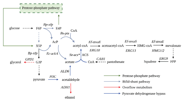 26) Scott A Wegner, Jhong-Min Chen, Samantha S Ip, Yanfei Zhang, Deepak Dugar, José L Avalos, Engineering acetyl-CoA supply and ERG9 repression to enhance mevalonate production in Saccharomyces cerevisiae, Journal of Industrial Microbiology and Biotechnology, (2021). https://doi.org/10.1093/jimb/kuab050