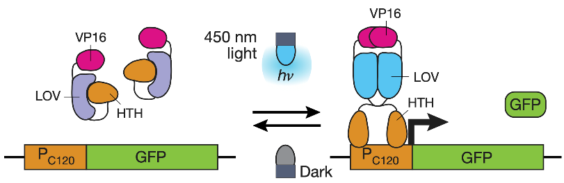 21) Zhao E.M., Zhang Y., Mehl J., Park H., Lalwani M.A., Toettcher J.E., Avalos J.L. (2018) Optogenetic regulation of engineered cellular metabolism for microbial chemical production. Nature, 555: 683-687. https://doi.org/10.1038/nature26141
