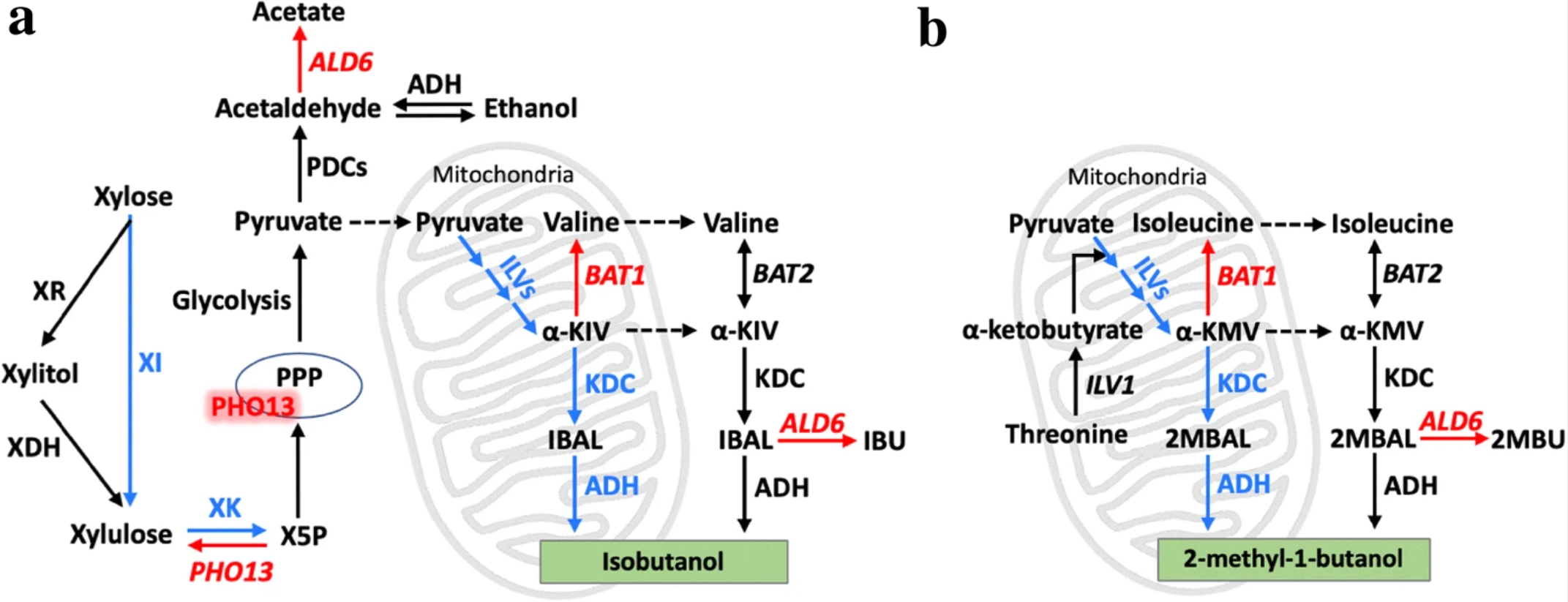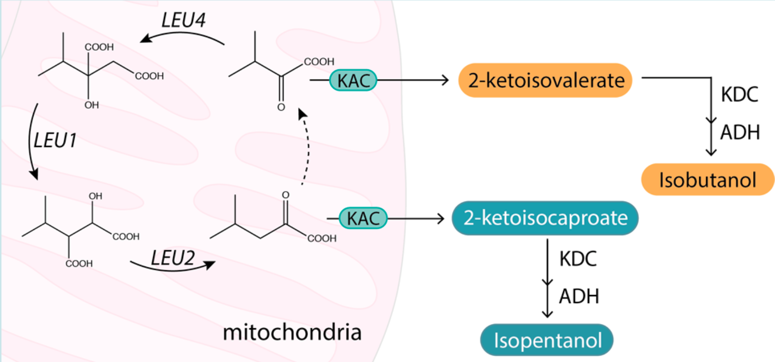 25) Sarah K.H., Zhang Y., and Avalos J.L. (2020) Mitochondrial compartmentalization confers specificity to the 2-ketoacid recursive pathway: increasing isopentanol production in Saccharomyces cerevisiae.ACS Synth. Biol. 9, 3, 546-555.