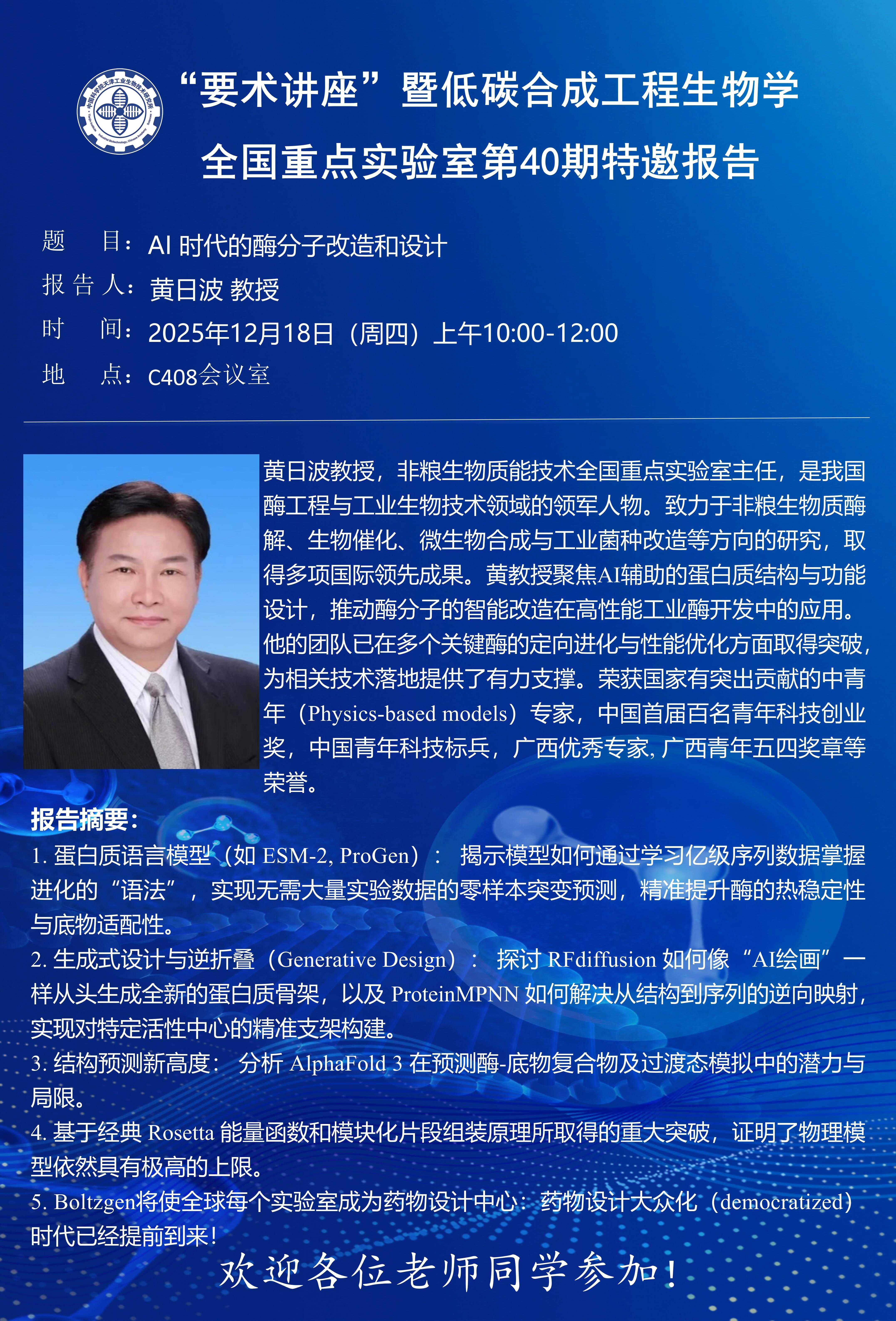 报告题目:AI 时代的酶分子改造和设计
