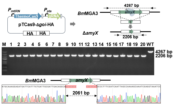 图2 甲醇芽孢杆菌CRISPR-ThermoCas9基因编辑系统
