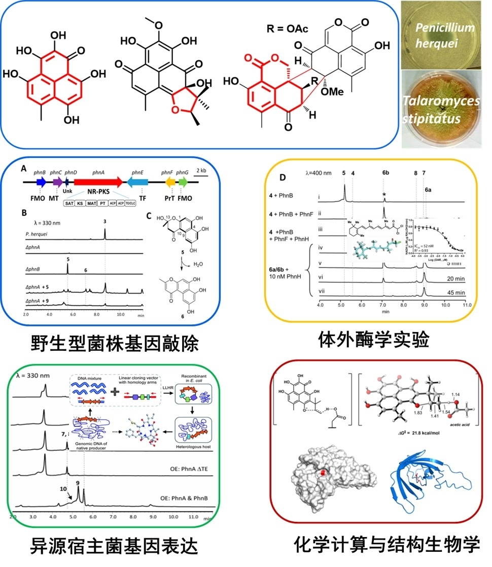 2阐述真菌天然产物的生物合成途径J. Am. Chem. Soc. 2016; J. Am. Chem. Soc. 2017; J. Am. Chem. Soc. 2018; Organ Lett 2022/2022等)