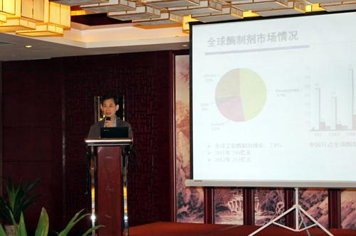 中国科学院科技促进发展局局长严庆首先致辞。他对工业酶产业技术创新战略联盟(试点)运行获得科技部批准表示祝贺,并希望各联盟成员能够通过酶联盟的平台定期交流,实现工业酶的产学研结合,推动我国工业酶的发展;期望各企业家能够在联盟运行中做出一定贡献,各专家能够根据企业需求贡献专业知识,以使联盟能够健康持续地运行下去。最后,严庆局长对于各联盟成员给予天津工业生物所的信任表示感谢,并表示中科院科技促进与发展局将为联盟的发展提供大力的帮助与支持。