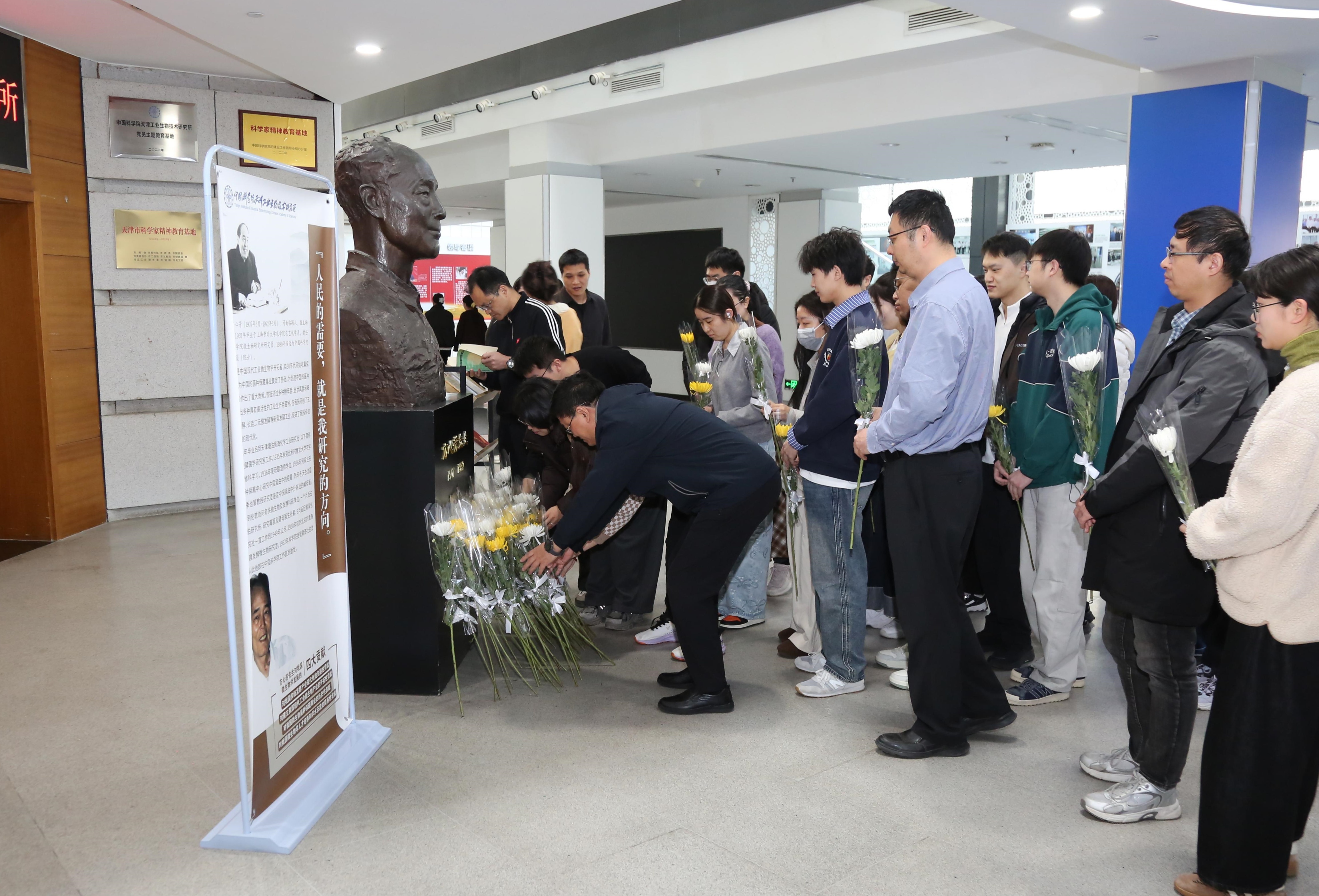 全体人员共同学习工业微生物学先驱方心芳先生生平事迹,深切追忆和缅怀方心芳先生不平凡的科学人生,学习弘扬其科学家精神,激励广大青年学子和科技工作者赓续初心、勇担使命。学习结束后,全体人员向方心芳先生铜像鞠躬致敬,献上鲜花,表达无限追思与崇高敬意。纪念活动集中展示了方心芳先生的重要著作、学术论文及相关历史资料,供大家现场查阅与借阅,鼓励青年科研人员深入研读经典,传承学术薪火,汲取攀登科学高峰的智慧与力量。